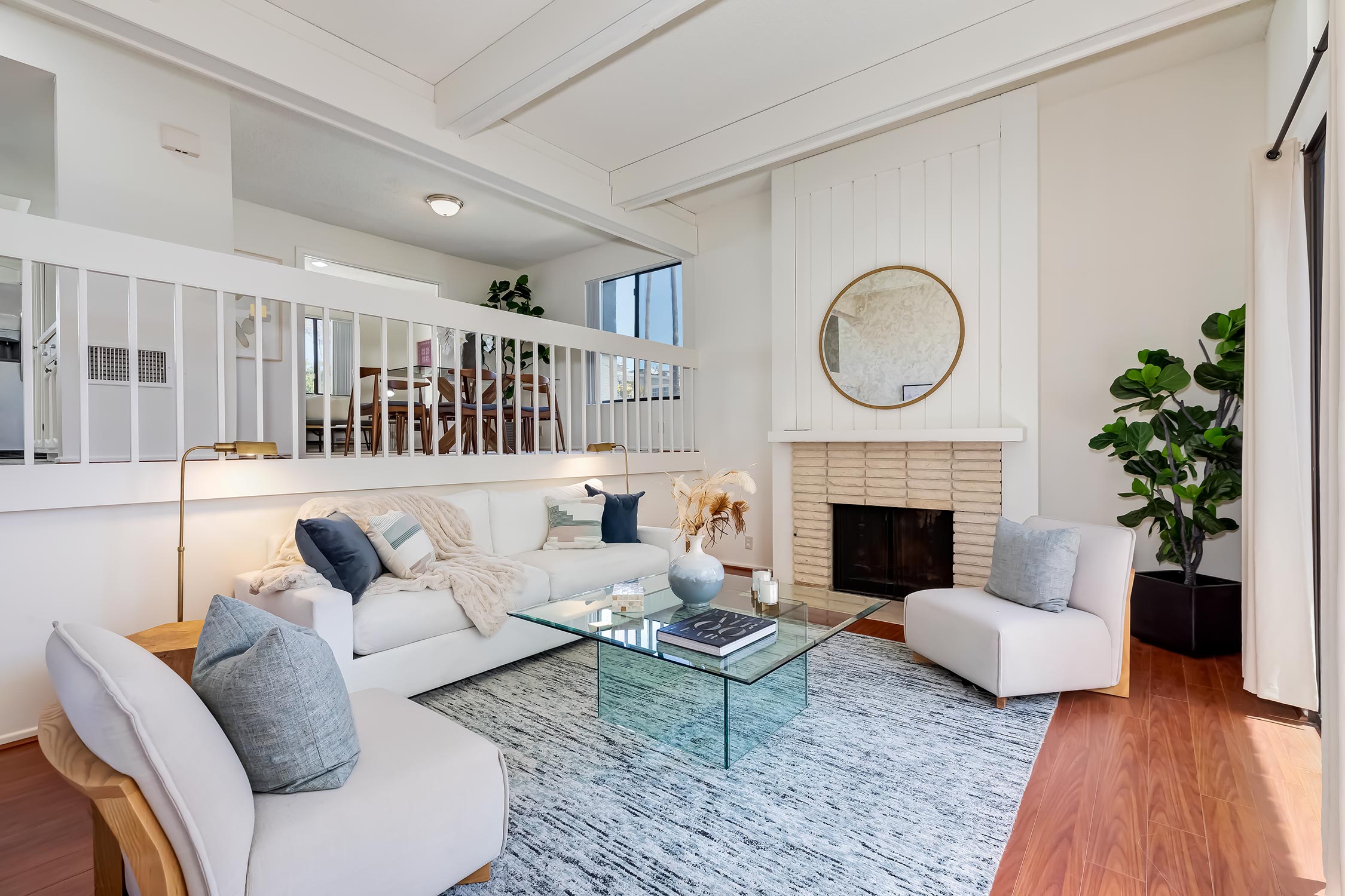 Shopping for new home? This spacious 2 bedroom, 3 bath, front-unit town home has plenty of natural light and is primed for an update to make it your own! The living room is bright, features a fireplace, high beamed ceilings, and a wall of sliding glass doors to let the sunshine in! A split-level stairway leads to dining area connects via a serving bar to the good-sized kitchen with stainless steel appliances. There is a cozy den ideal as a private home office. Upstairs an enormous primary suite with vaulted ceilings and has a spacious bathroom complete with separate tub and shower. Also upstairs is a second bedroom conveniently located adjacent a full bath and laundry area with a full-size washer/dryer. Convenient location to all the shops and restaurants along Montana Ave... Call Todd Mitchell for more information. Move-in today!